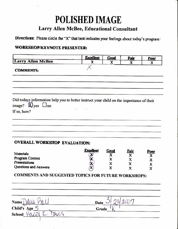 TECHER/PARENT EVALUATIONS